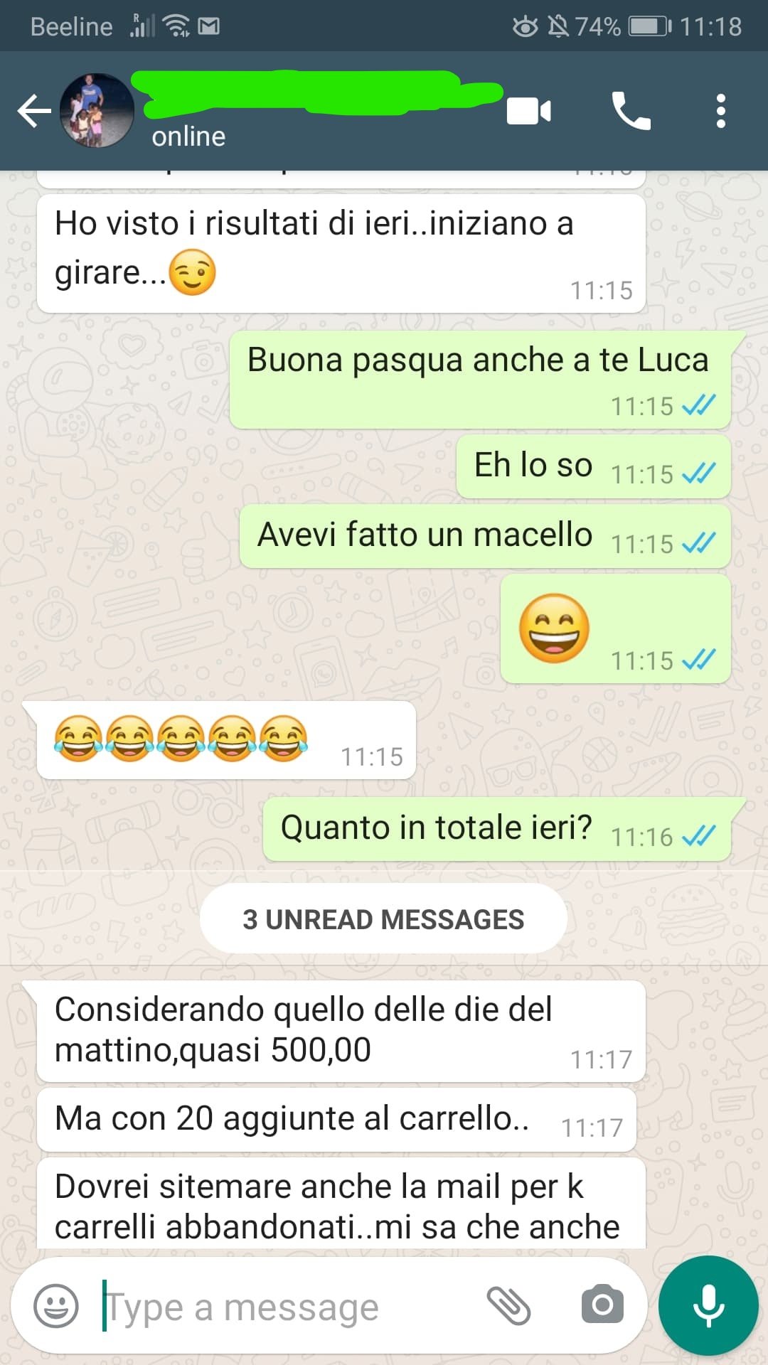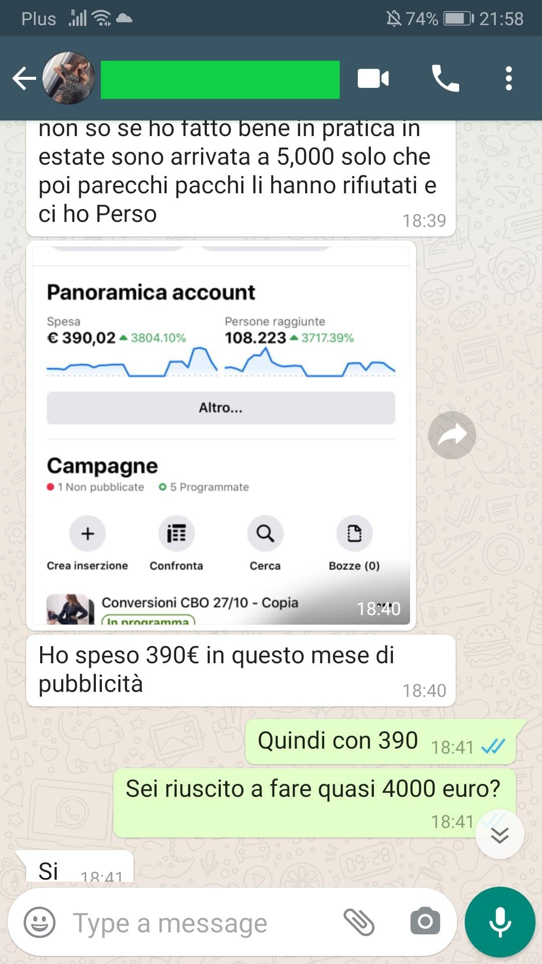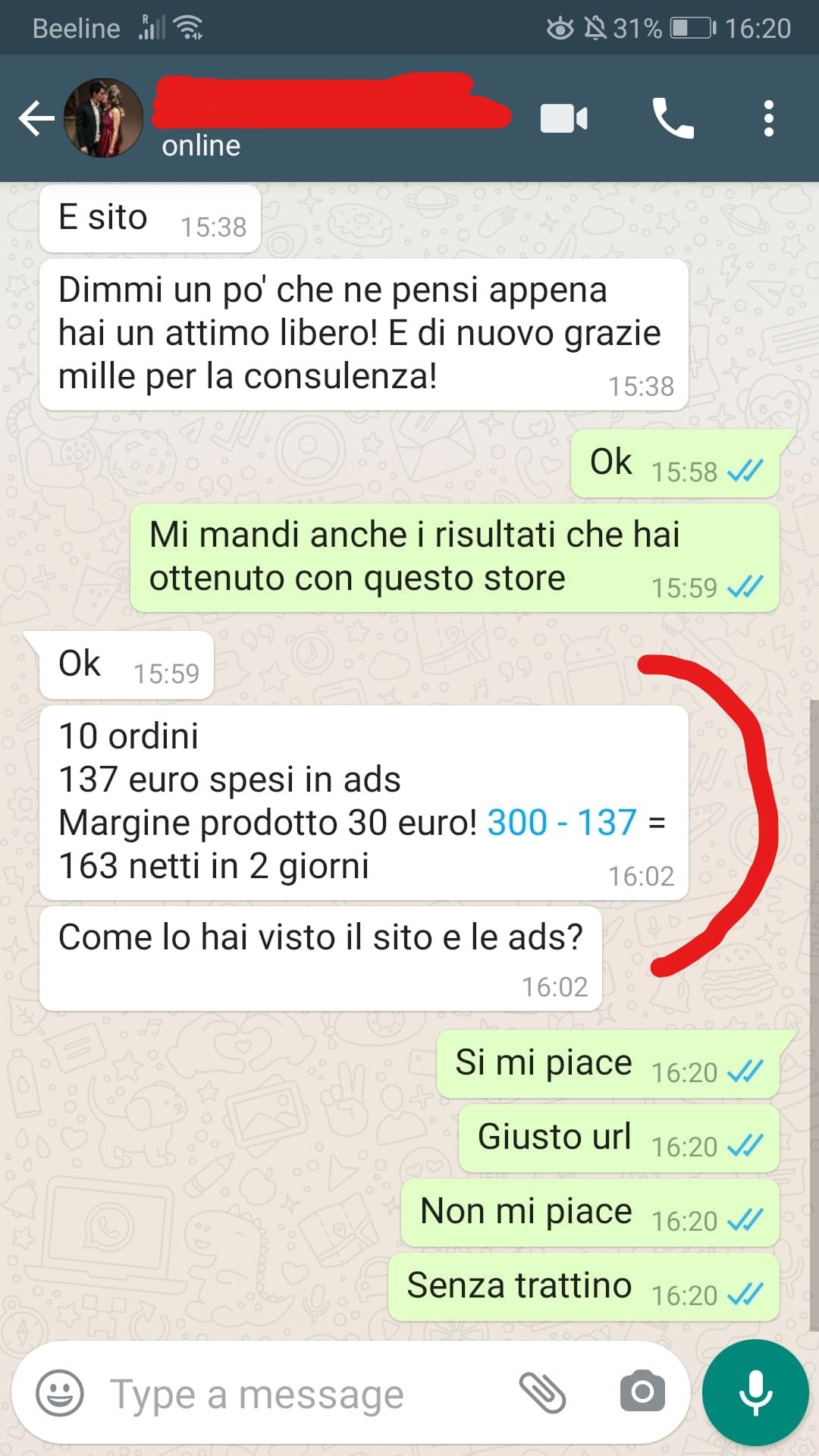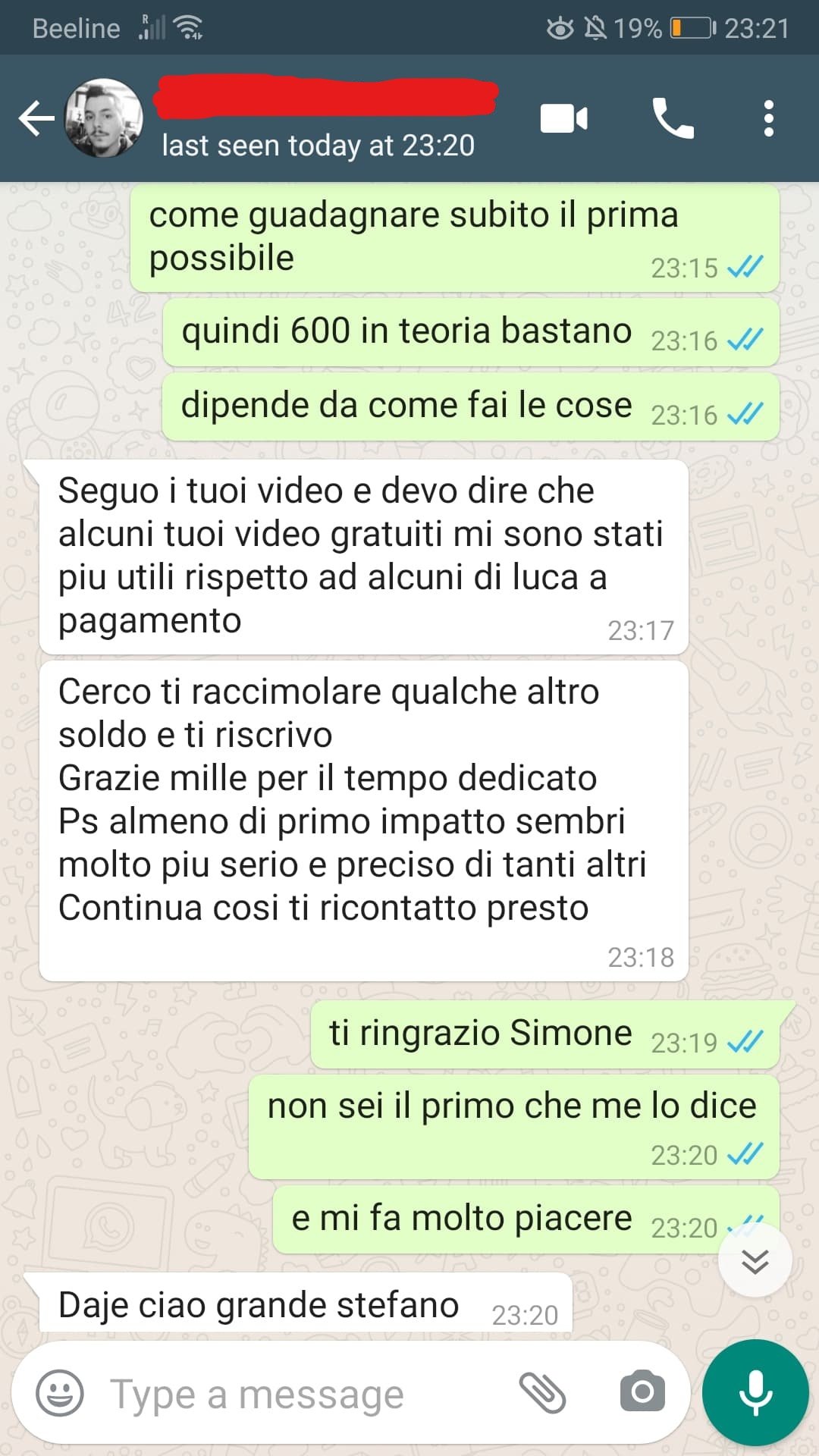 I risultati di seguito sono il frutto di un massiccio passaggio all’azione e dell’attuazione diligente delle strategie spiegate nel programma avanzato. Per questo motivo desidero chiarire che non garantiamo alcun risultato, in quanto tutto dipende dal tuo impegno e dalla tua volontĆ . L’unica promessa che ti facciamo, ĆØ di darti accesso esattamente alle stesse informazioni utilizzate da tutti coloro che hanno raggiunto risultati incredibili attraverso la nostra formazione. Ecco alcuni dei loro risultati di seguito.