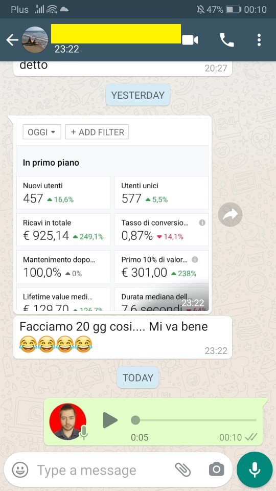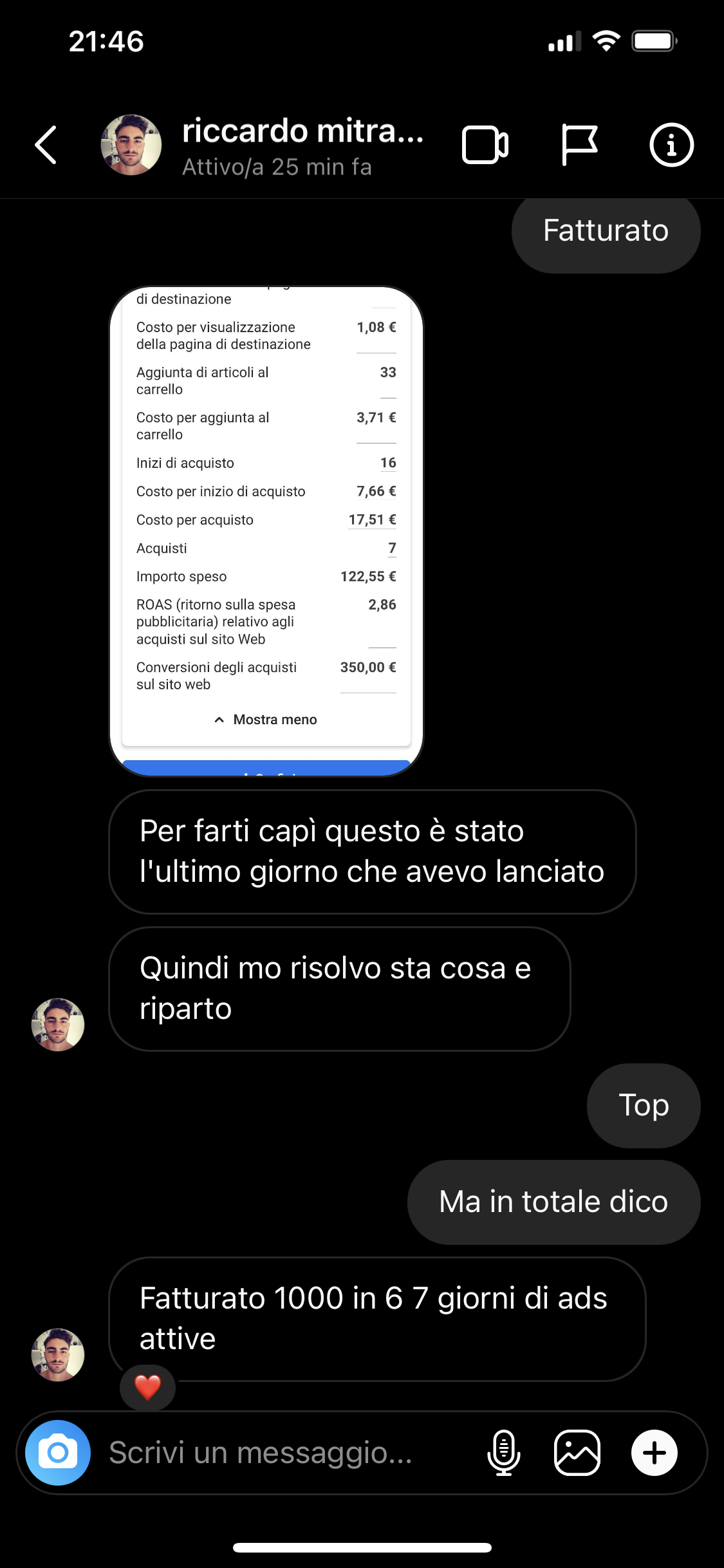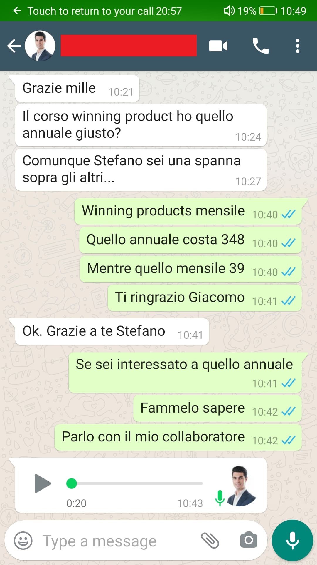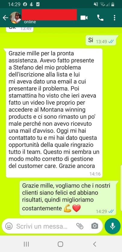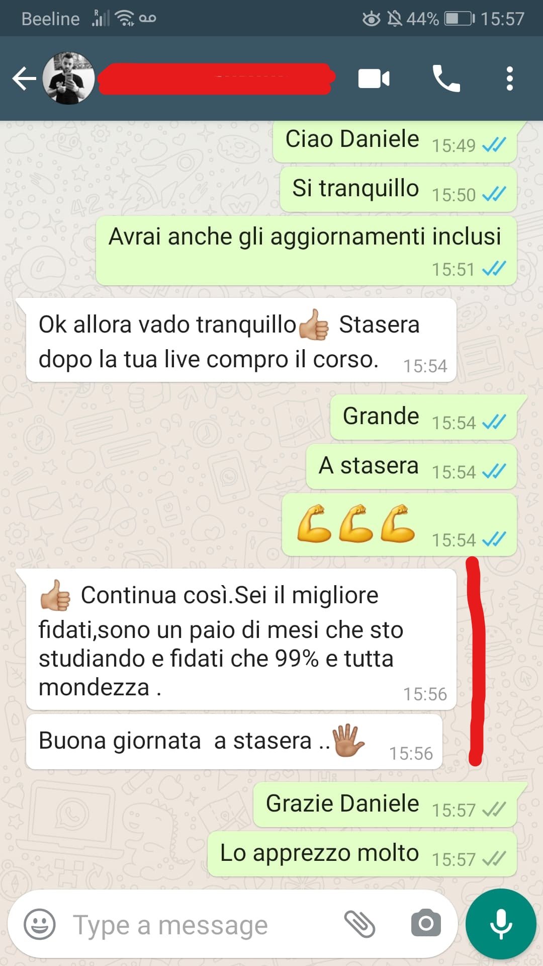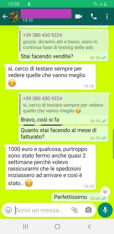 I risultati di seguito sono il frutto di un massiccio passaggio all’azione e dell’attuazione diligente delle strategie spiegate nel programma avanzato. Per questo motivo desidero chiarire che non garantiamo alcun risultato, in quanto tutto dipende dal tuo impegno e dalla tua volontĆ . L’unica promessa che ti facciamo, ĆØ di darti accesso esattamente alle stesse informazioni utilizzate da tutti coloro che hanno raggiunto risultati incredibili attraverso la nostra formazione. Ecco alcuni dei loro risultati di seguito.