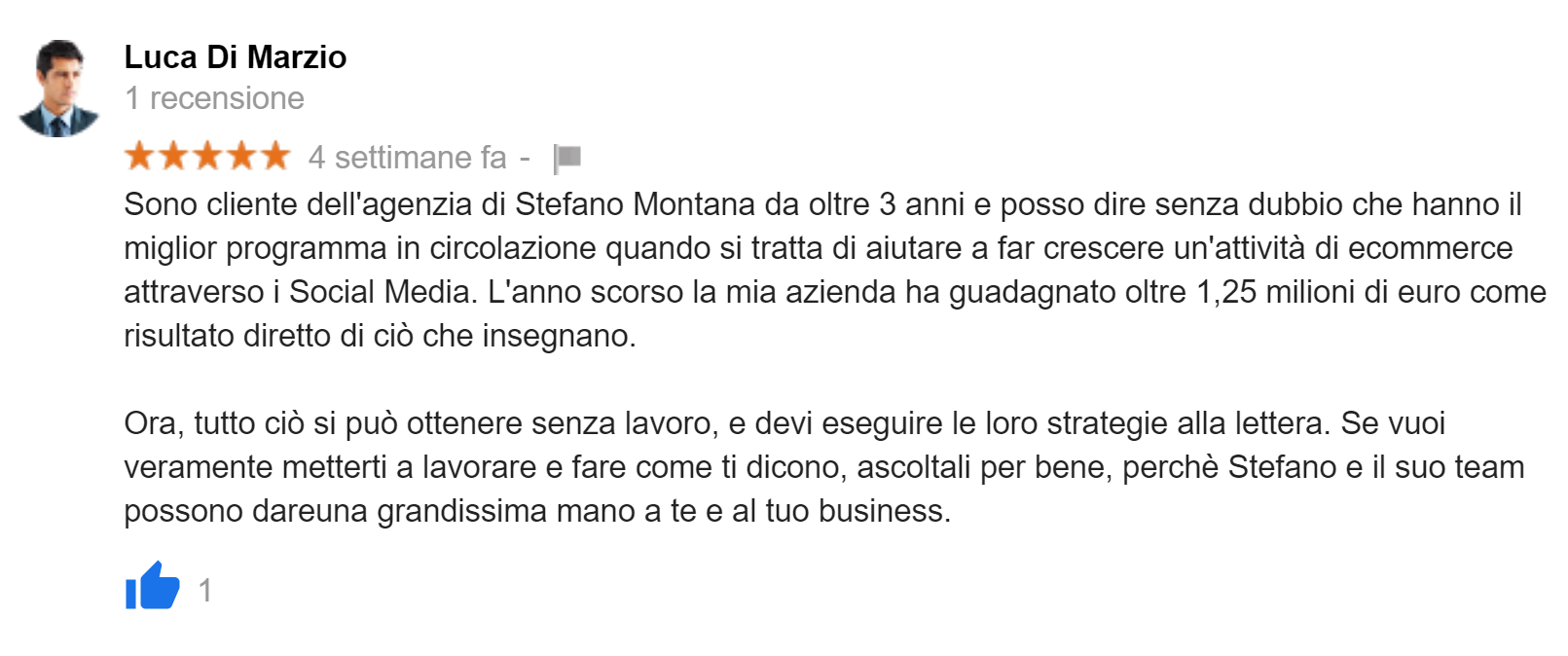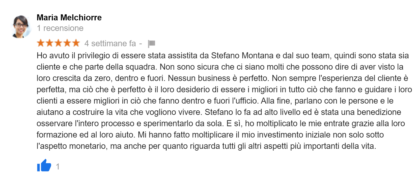 • Queste sono recensioni di miei studenti e di miei clienti che hanno deciso di condividere la loro esperienza con Stefano Montana.